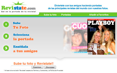 Seguro que navegando por facebook u otros sitios sociales habrás observado que muchas personas tienen fotomontajes en portadas de revistas y obviamente no salieron en la portada de la revista del mes, se trata de un simple montaje que podemos realizar sin conocimientos de photoshop o edición de imágenes, basta con ir a Revistate que es una página que se dedica a hacer este tipo de trabajos, el procedimiento es muy sencillo basta con subir tu foto y luego elegir en que revista quieres que aparezca tu foto, luego te dan un código para que lo compartas en sitios sociales o foros, si quieres guardar la foto tendrás que realizarlo mediante una captura de imagen.